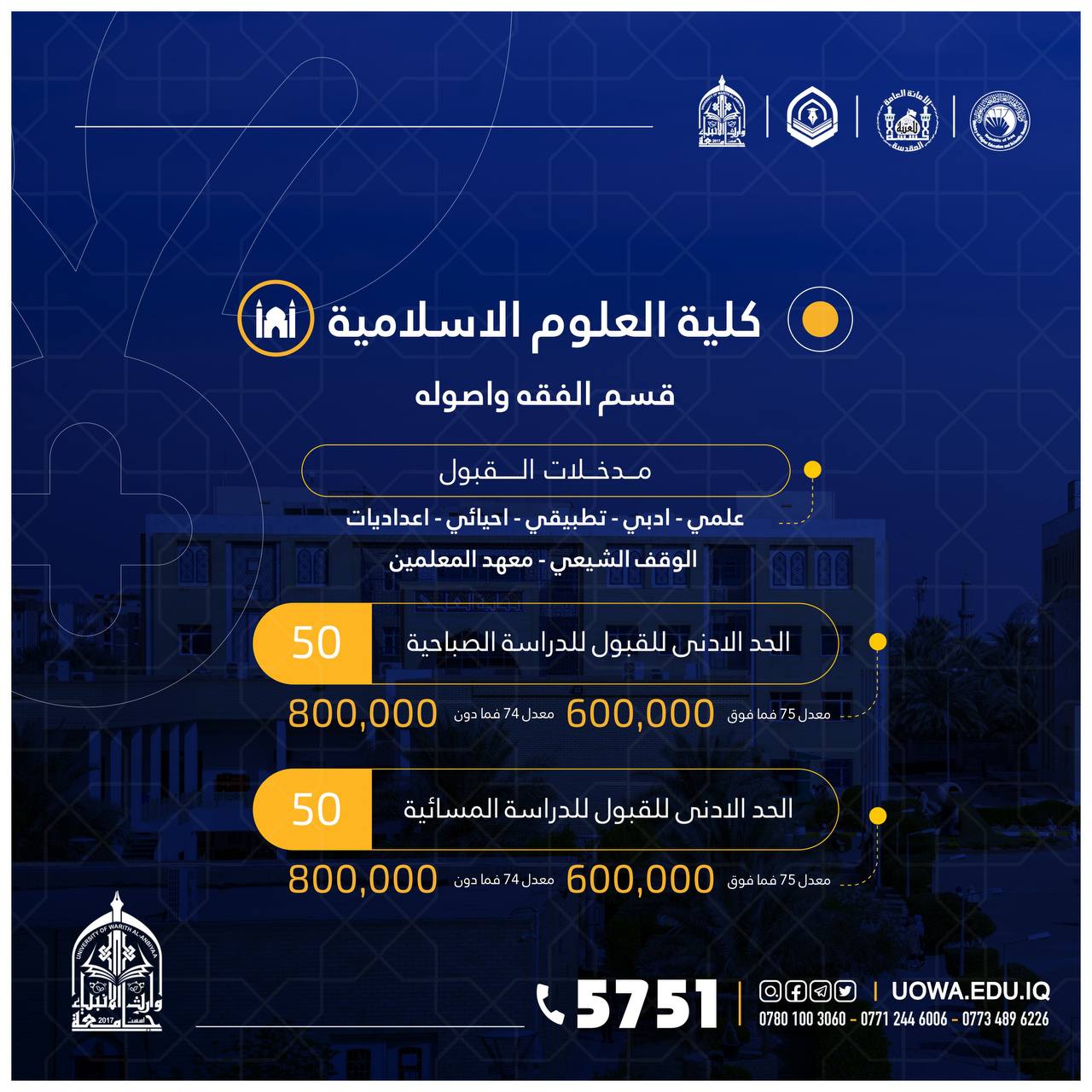 الطلبة الاعزاء الراغبين بالتقديم على كلية العلوم الاسلامية في جامعة وارث الانبياء(عليه السلام)