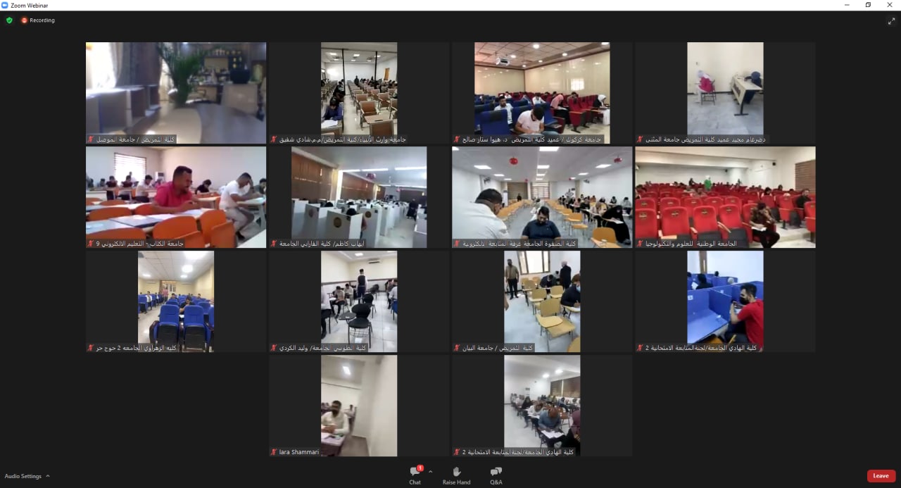 عبر التعريف الالكتروني لمقاعد جلوس الطلبة في القاعات الامتحانية، وارقام هذه القاعات بعد أن تم اجراء عدد من الامتحانات التكوينية التحضيرية في تدريب السادة اعضاء هيئة التدريس في الكلية والطلبة في استخدام المنصة الامتحانية الالكترونية.