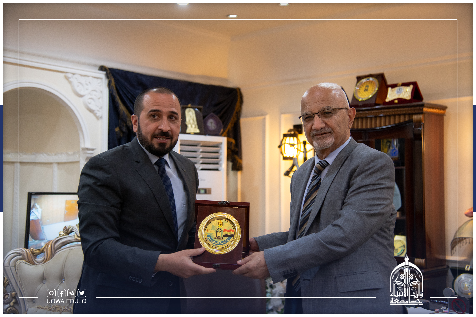 استقبلت رئاسة الجامعة متمثلة بالسيد رئيس الجامعة الاستاذ الدكتور ابراهيم الحياوي، وفد من المديرية العامة للتربية في محافظة كربلاء المقدسة برئاسة المدير العام الاستاذ عباس عودة السلطاني.