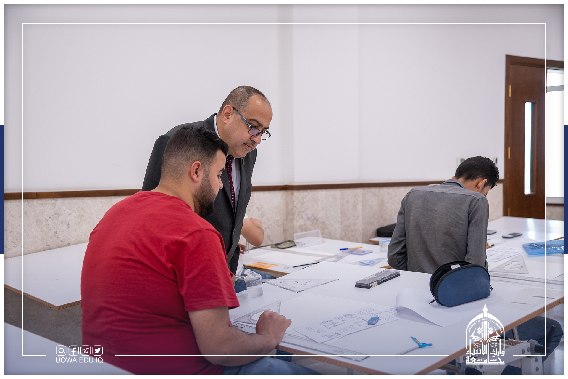رئاسة جامعة وارث الانبياء(عليه السلام) تتابع سير الامتحانات النهائية لطلبة كليات وأقسام الجامعةامنياتنا لجميع طلبتنا الاعزاء بالموفقية والنجاح