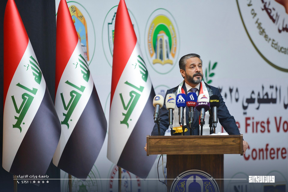 The Minister of Higher Education and Scientific Research, Prof. Dr. Naim Al-Aboudi, honored University of Warith Al-Anbiyaa during the First National Conference on Volunteer Work 2025, in recognition of the university’s outstanding efforts in promoting a culture of volunteerism and enhancing students’ active role in community service.