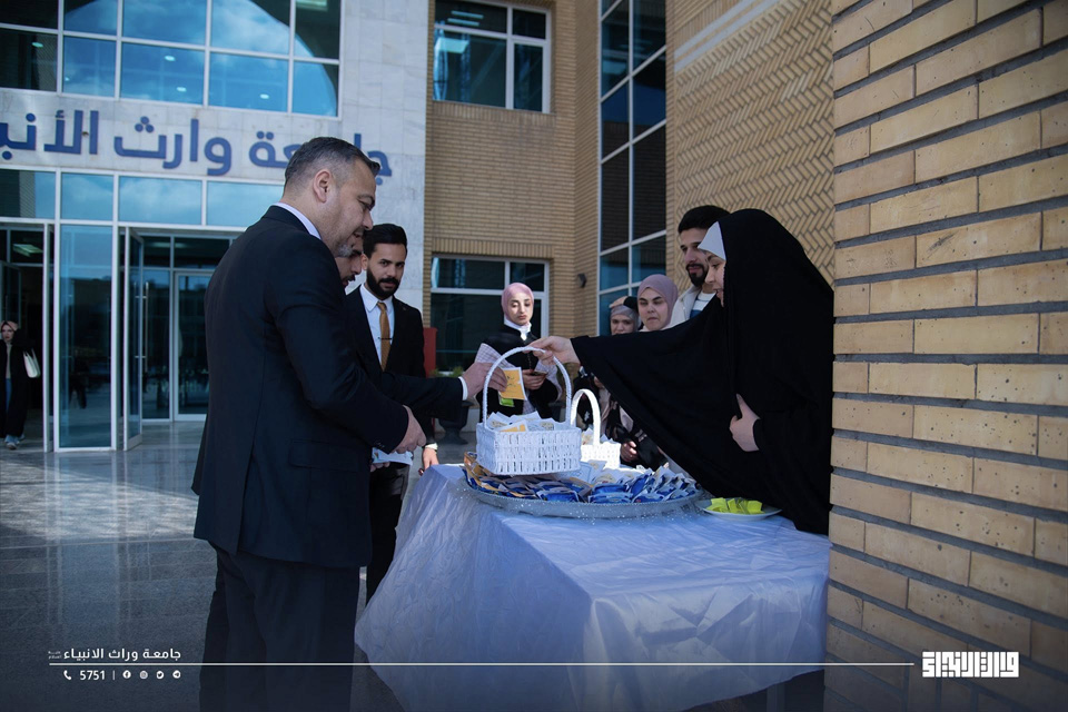On the occasion of the blessed birth anniversary of Amir Al-Mu’minin Imam Ali ibn Abi Talib (peace be upon him), students of Warith Al-Anbiyaa University (AS) marked the occasion through a meaningful initiative that included distributing sweets and sharing selected quotes and highlights from his noble life across the university campus, aiming to promote his lofty values among the academic community.
