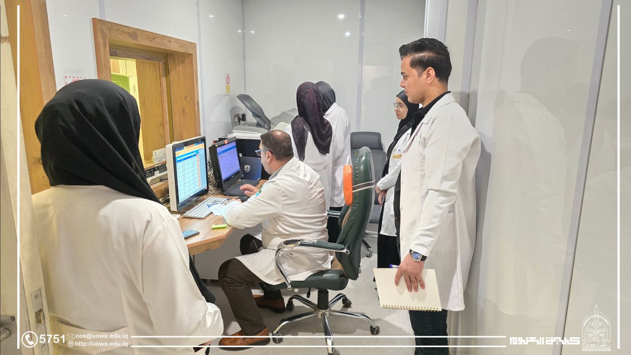 In implementation of the directives of the respected Dean of the College of Science, a delegation from the college conducted a field visit to follow up on the training program of third-year students within the departments of Imam Zain Al-Abidin (peace be upon him) Specialized Hospital.