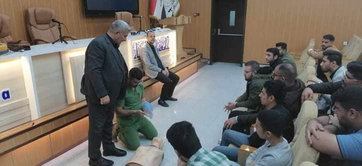 The College of Medicine, in collaboration with the Directorate of Emergency Medical Operations and Services, organized a training workshop for medical students titled "Basic Life Support (BLS) for Seniors and Children." The workshop was delivered by the Director of Emergency Medical Operations and Services, Consultant Doctor Fadel Aklaa Al-Rubaie.