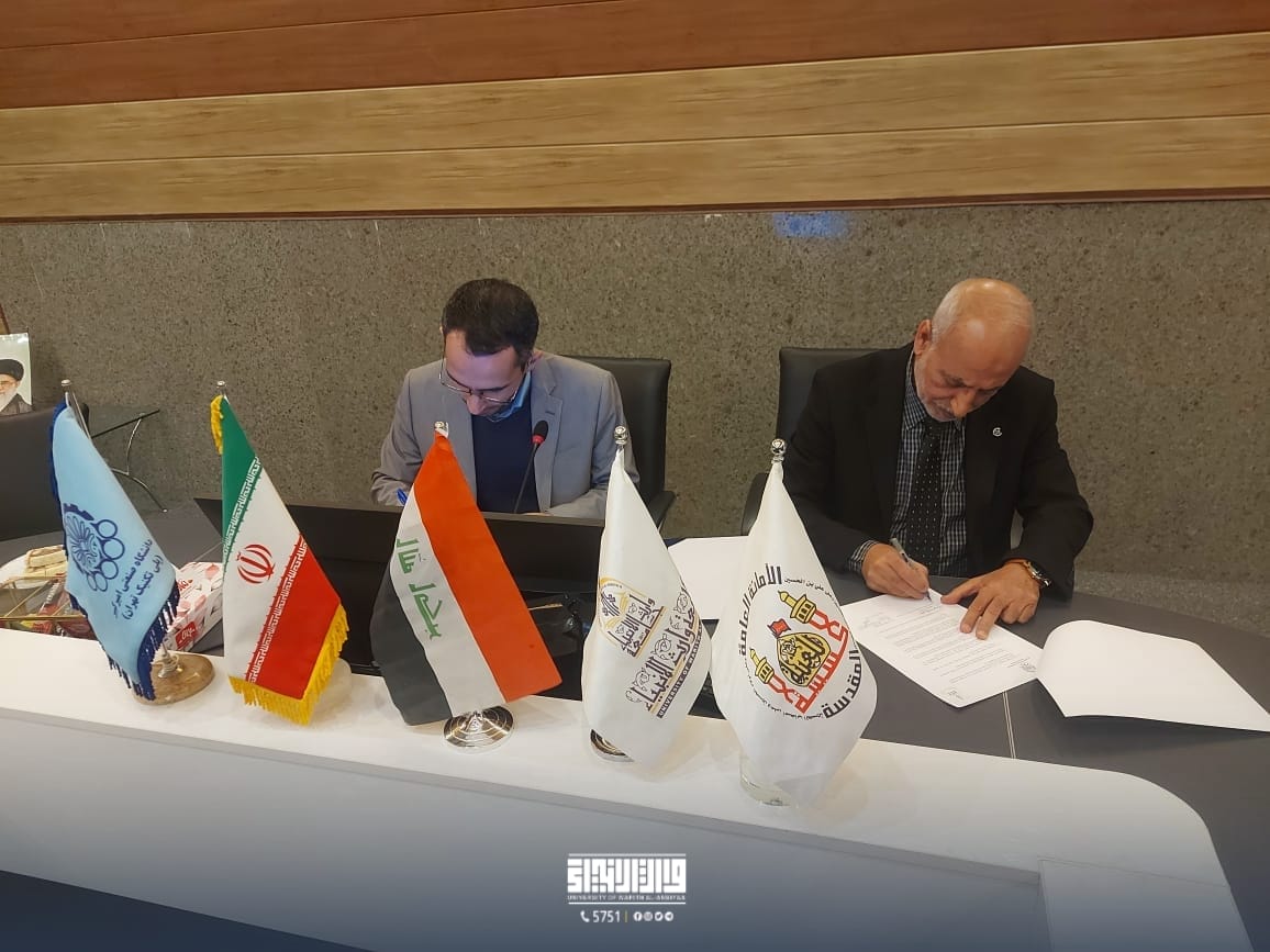 A delegation from the College of Engineering at Warith Al-Anbiyaa University signed a memorandum of understanding with Amir Kabir University in Iran. The delegation, led by Assoc. Prof. Dr. Raouf Mohammed Radi and including the Heads of the Petroleum and Gas Engineering Department and specialists from the Al-Sabt Specialized Center.