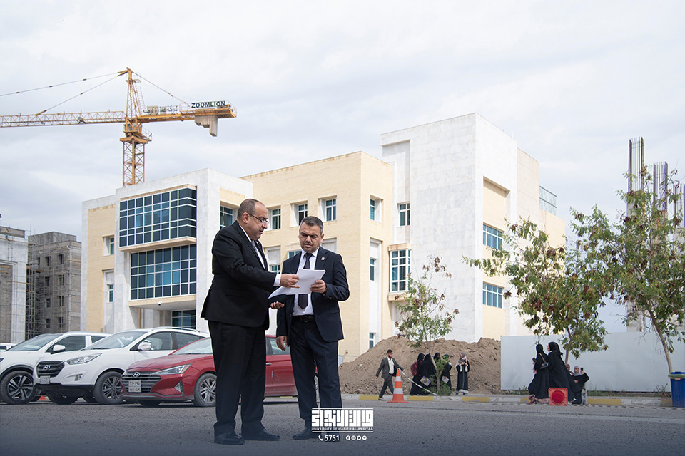 Professor Dr. Ibrahim Al-Hayawi, the President of the University of Warith (peace be upon him), led a field tour within the university premises, accompanied by the Assistant Scientific Dean, Professor Dr. Waqad Al-Mousawi, to inspect the urban and development projects underway within the university and to monitor the progress of these projects.