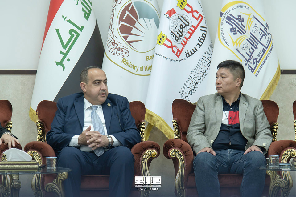 Within the framework of scientific and cultural communication between universities, a delegation from the Chinese University of Nanjing visited the University of Warith Al-Anbiyaa (PBUH). They were received by His Excellency the President of the University, Professor Dr. Ibrahim Saeed Al-Hayawi, Assistant President of the University for Scientific Affairs, Professor Dr. Waqed Al-Moussawi, in addition to a number of deans and heads of scientific and administrative departments.