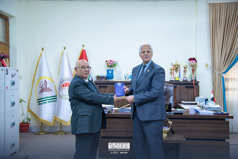 The Deanship of the College of Administration and Economics at the University of Warith Al-Anbiyaa (PBUH) presented a shield of appreciation to Professor Dr. Hashem Jabbar Al-Husseini, the Dean of the College of Administration and Economics at the University of Karbala, and Professor Dr. Akram Al-Yasiri, the Assistant President of the University of Karbala for Administrative Affairs, in relation to the "Second International Scientific Conference.".