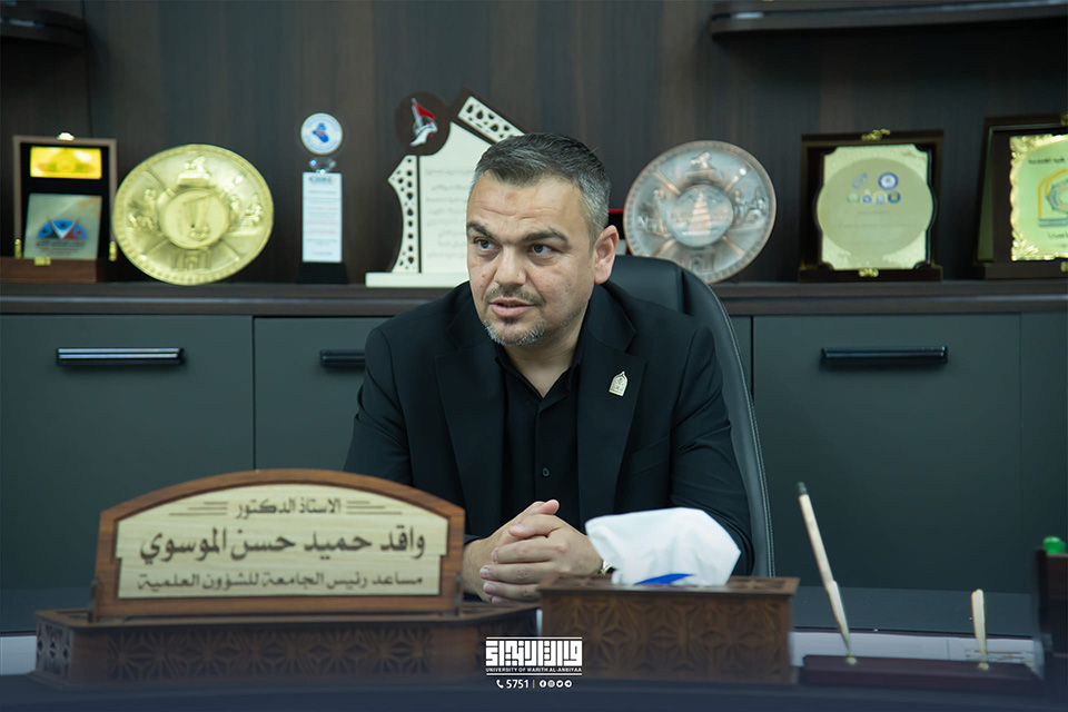 The University of Warith Al-Anbiyaa (PBUH) received a delegation of Egyptian students as part of the Student Exchange Programme for summer training. The Vice-President of the University for Scientific Affairs, Professor Dr. Waqid Al-Moussawi, and the Dean of the College of Nursing, Professor Dr. Murtada Al-Jubouri, met with the international students to discuss the training programmes that were prepared in cooperation between the Office of the Vice-President of the University and the College of Nursing.