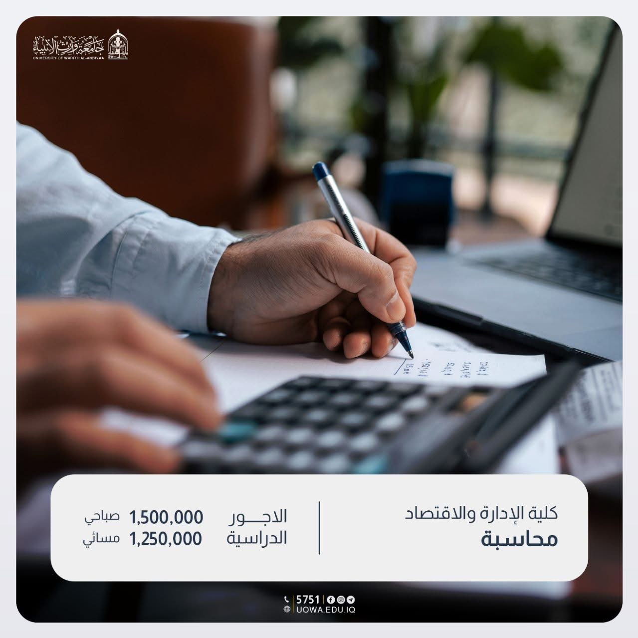 Warith Al-Anbiya University - where we graduate professional accountants with theoretical knowledge and a practical approach, capable of analyzing financial data and contributing to supporting businesses and institutions according to modern standards.