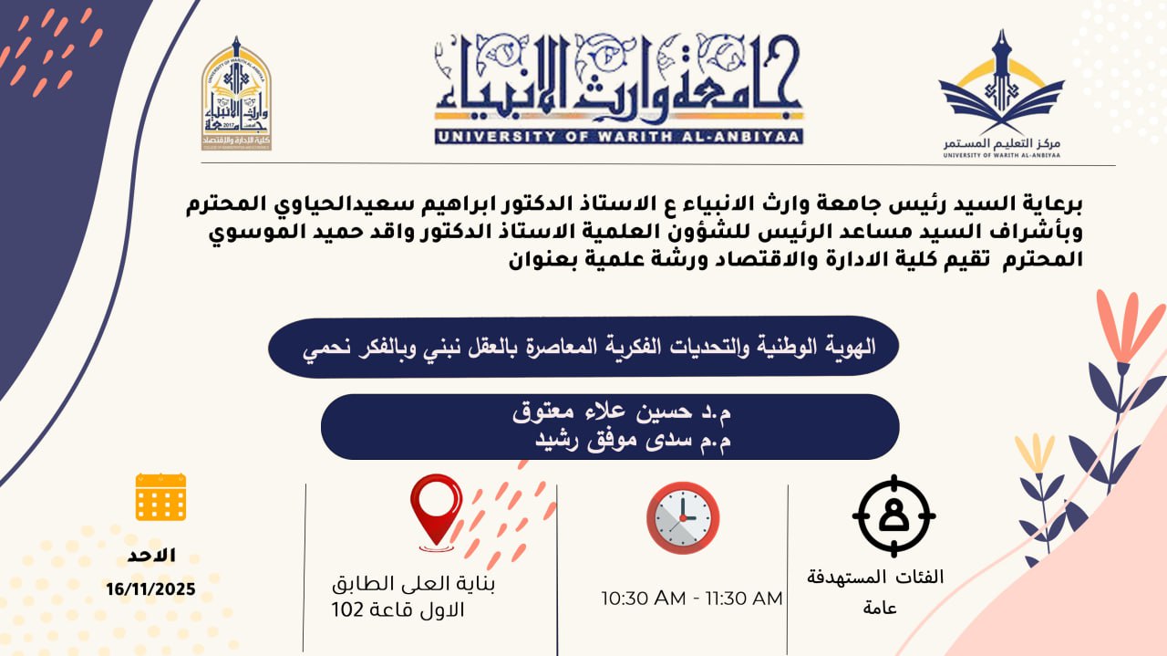 The College of Administration and Economics at Al-Warith University is holding a course titled