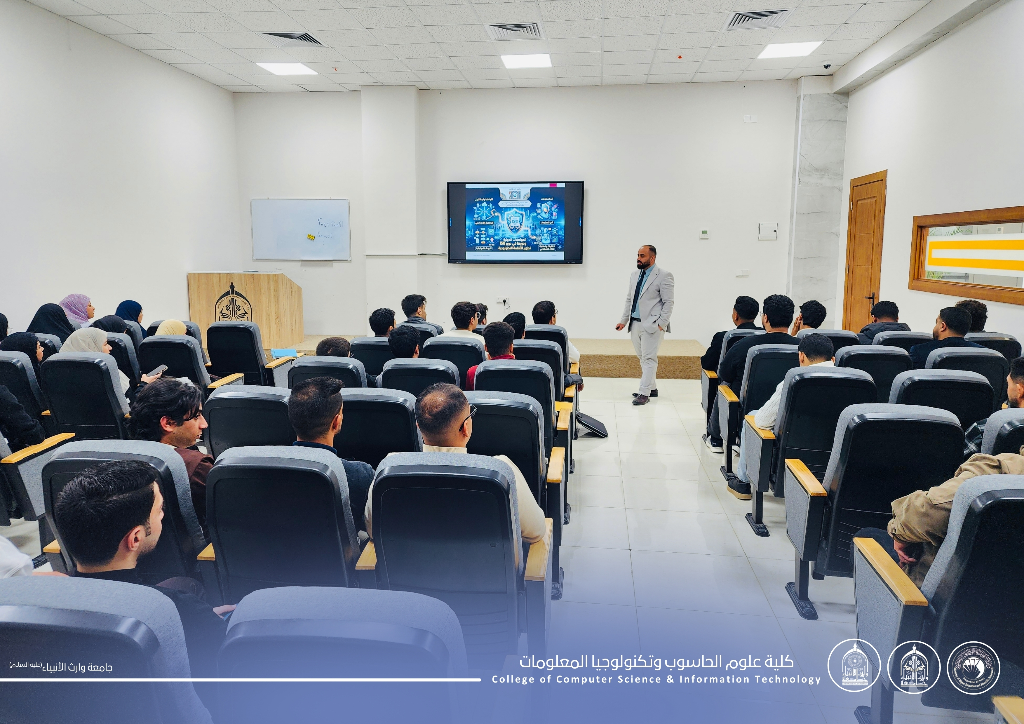 The College of Computer Science and Information Technology / Women’s Affairs Unit at the University of Warith Al-Anbiyaa (peace be upon him) organized a scientific workshop entitled “International ISO Standards and Their Role in Developing Technological Systems” on 10-3-2026. The workshop was delivered by Assistant Lecturer Ali Mahmoud Ali, Rapporteur of the Artificial Intelligence Department.