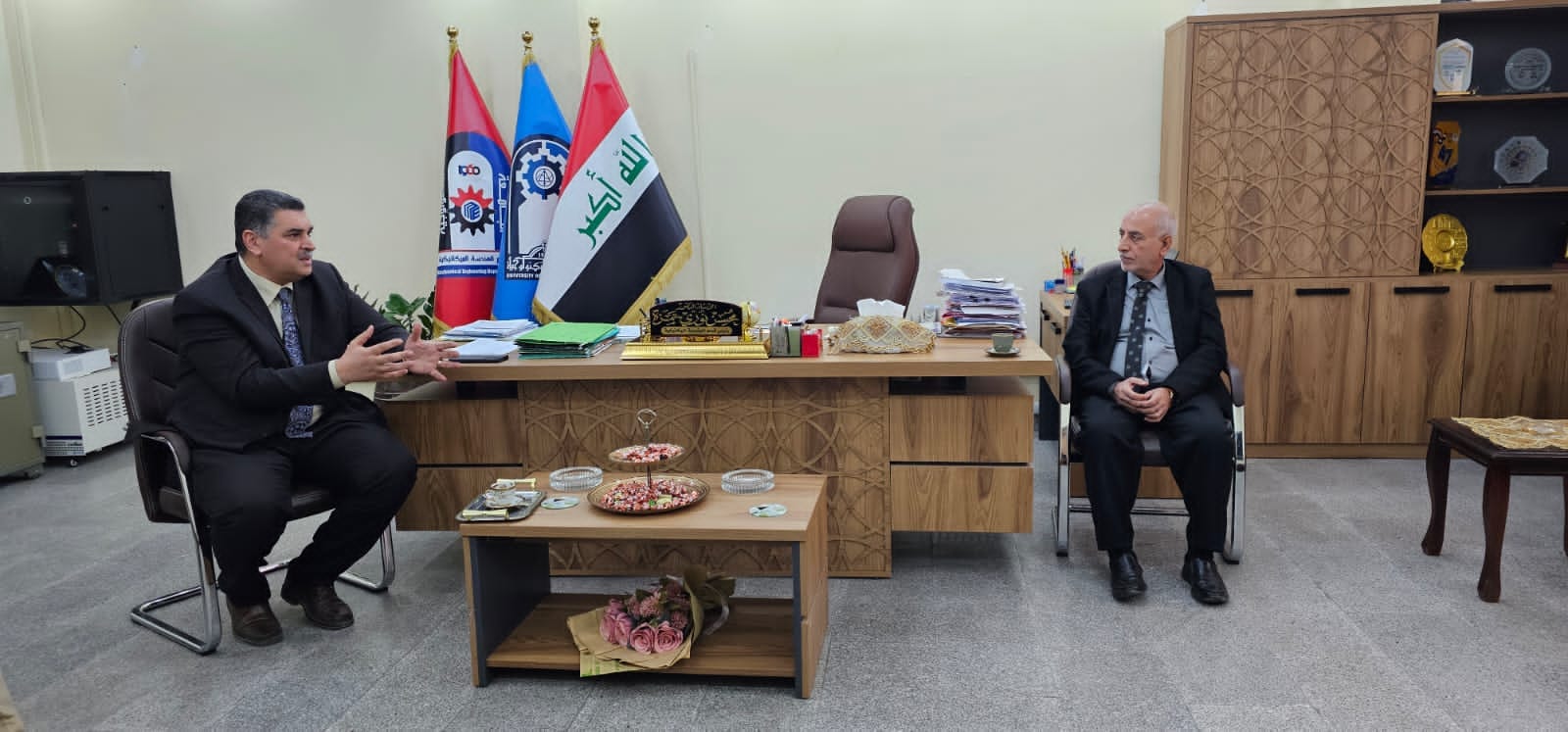 In order to enhance scientific cooperation between the College of Engineering at the University of Warith Al-Anbiyaa (peace be upon him) and the University of Technology in the capital, Baghdad, a delegation of teachers from the Department of Aircraft Engineering and Oil and Gas Engineering visited to discuss cooperation in all scientific and research fields in the service of the college’s students.