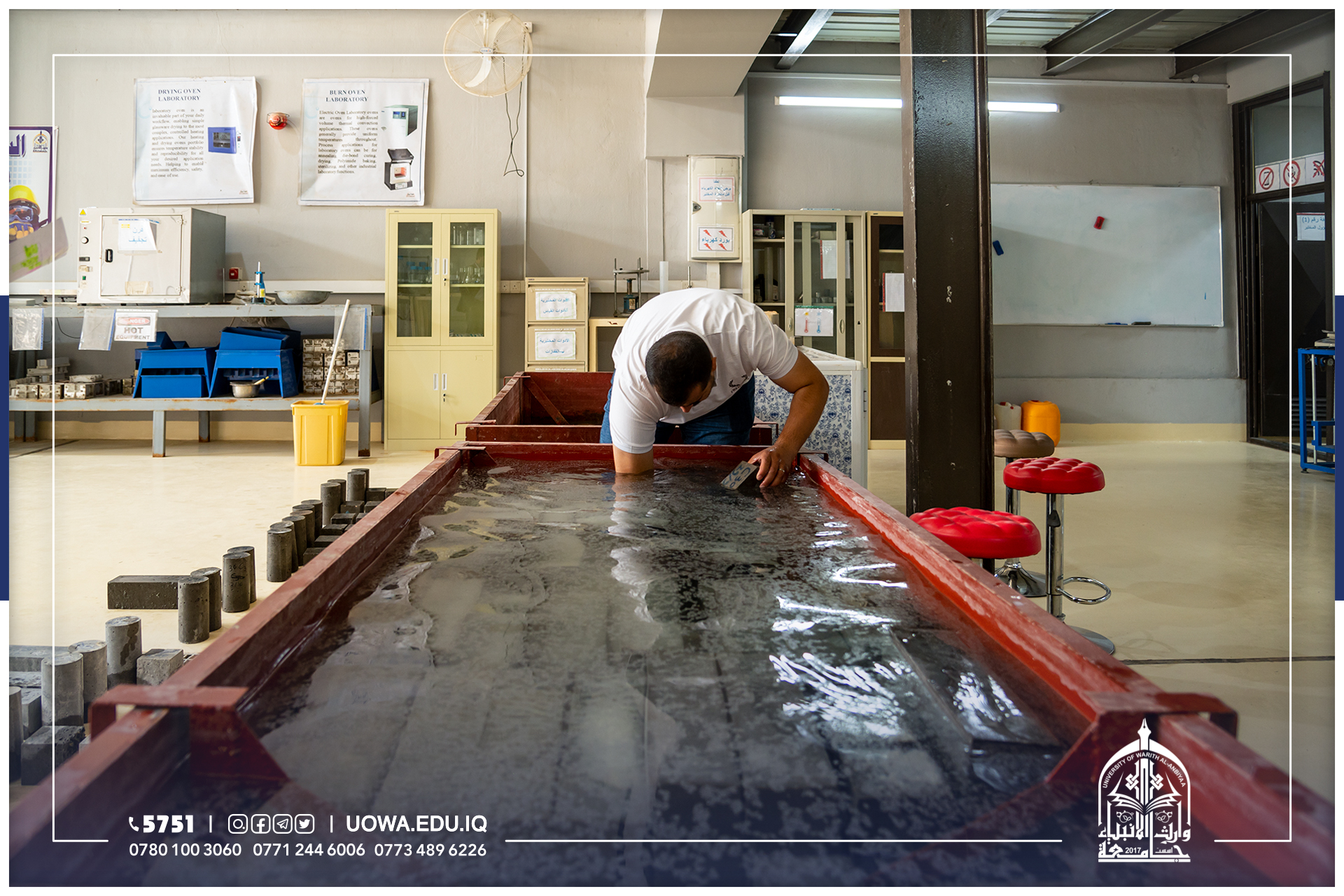 This laboratory is concerned with conducting laboratory tests for construction materials as well as laboratory tests for cement, concrete materials and aggregates (sand and gravel) and these tests are very necessary to enable the student to know how to mix materials with each other and in certain and accurate proportions and to know the problems facing him in the event that the materials are not mixed according to the specified proportions and appropriate standard conditions that lead to the success or failure of the sample and the extent to which it conforms to the technical specifications or not. Material
