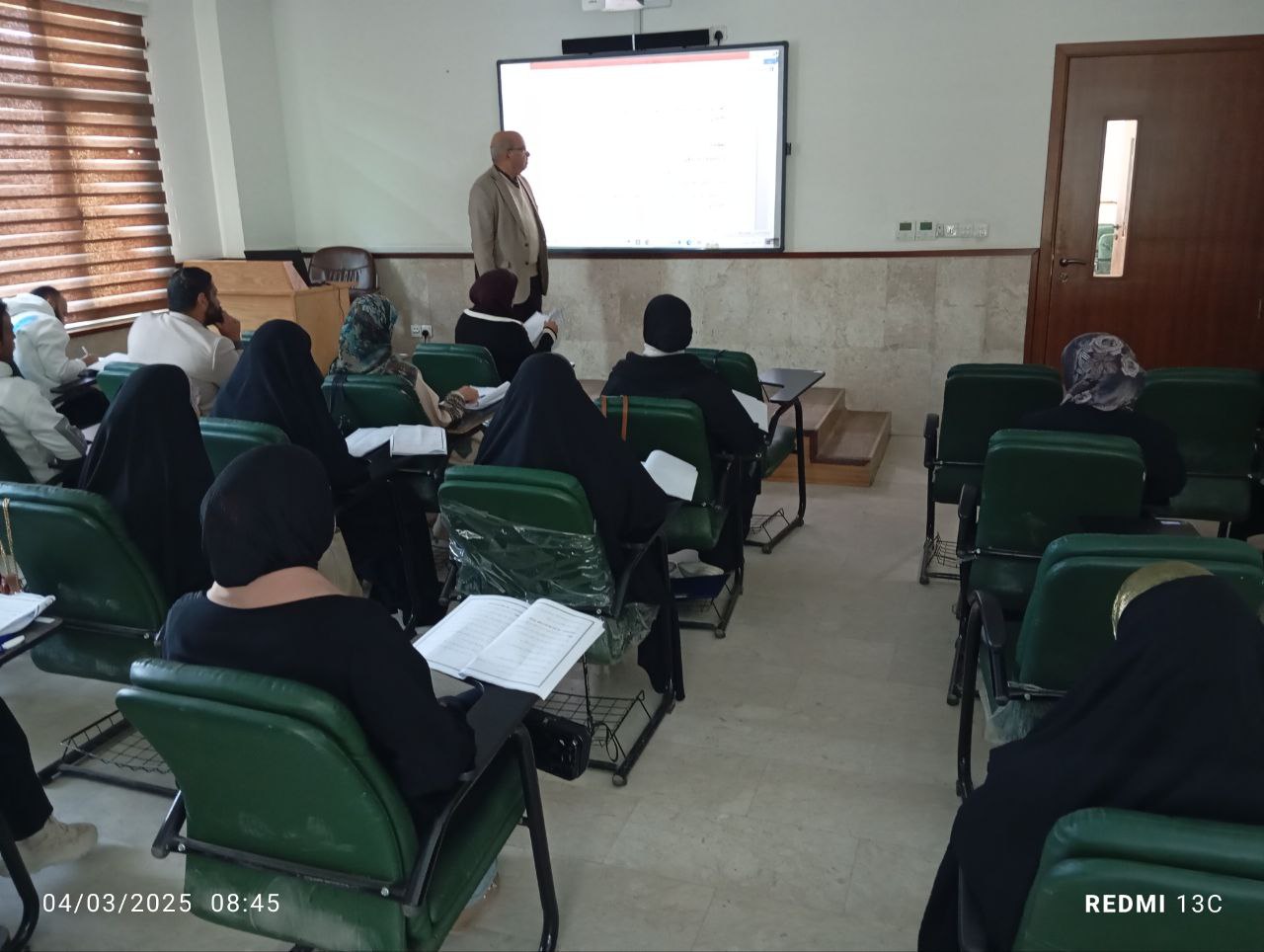 The College of Islamic Sciences held an academic symposium titled "The Crimes of the Ba'ath Party in Iraq: A Historical, Political, and Legal Analysis," presented by Dr. Iyad Karim and attended by a group of students.