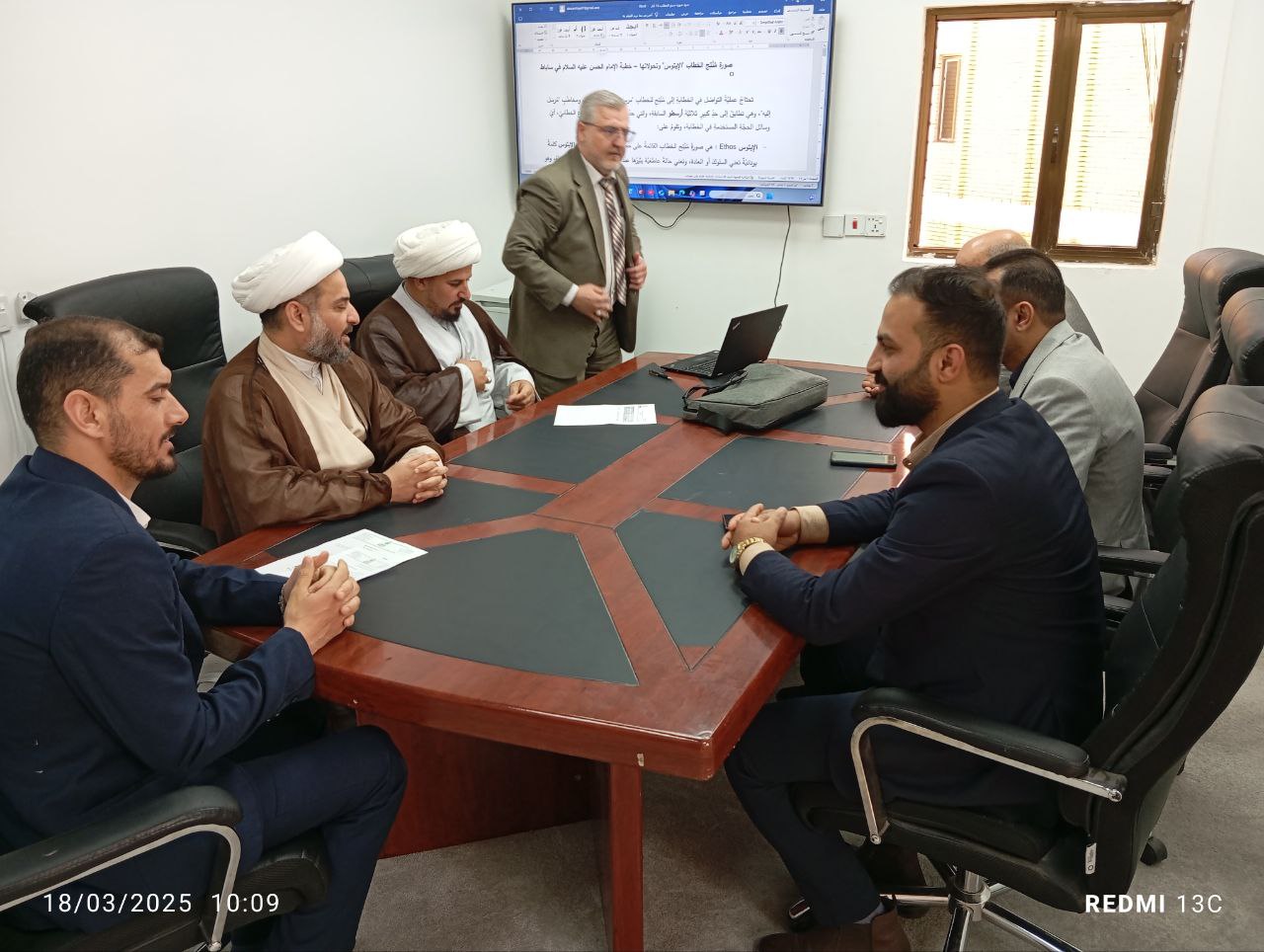 The College of Islamic Sciences organized a scientific symposium titled "The Image of the Discourse Producer and Its Transformations – The Sermon of Imam Al-Hasan (Peace Be Upon Him) in Sabat as a Model," presented by Dr. Aksam Ahmed.