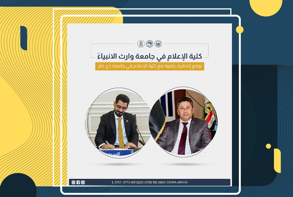 On 04/19/2025, the College of Media at Warith Al-Anbiyaa University signed an agreement of support and scientific sponsorship with the College of Media at the University of Baghdad.