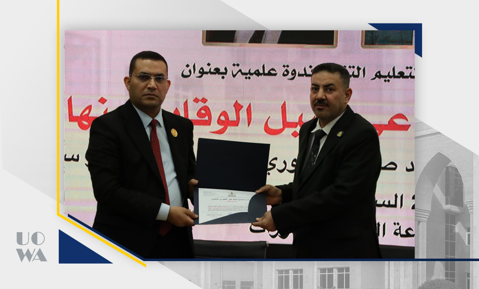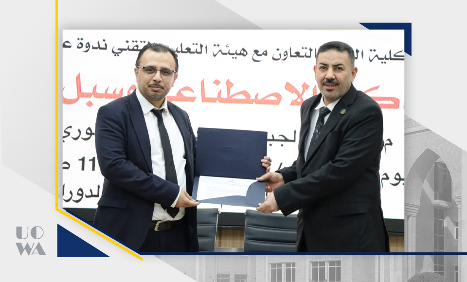 Under the patronage of the esteemed President of Warith Al-Anbiya University, Professor Ibrahim Al-Hayawi, and under the direct supervision of the esteemed Dean of the College of Medicine, Professor Ali Abdul Saadoun Al-Ghazi, the College of Medicine, in cooperation with the Technical Education Authority, held a scientific symposium entitled "The Risks of Artificial Intelligence and Ways to Prevent Them" on Tuesday, April 15, 2025, in the Workshops and Courses Hall in Al-Naeem Building.