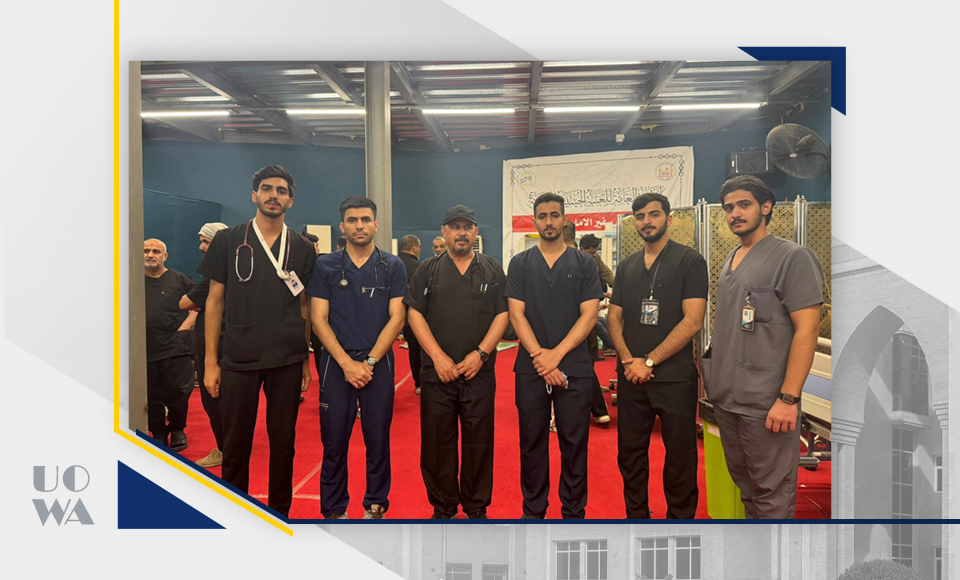 Amidst the sublime spiritual atmosphere of the immortal Arbaeen pilgrimage, the Deanship of the College of Medicine at Warith al-Anbiya University extends its highest expressions of appreciation, pride, and respect to our dear students participating in the medical service detachments deployed along all pilgrims' routes. We express our deep appreciation for the time, effort, and expertise they have devoted to treating, curing, and alleviating the pain of the honorable pilgrims. This would not have been possible without the desire, knowledge, and skill of this good group of our sons and daughters, which enabled them to perform this great task. The evaluations we received from the doctors supervising the work of our volunteer students were wonderful and a source of pride for us all. All supervisors noted the high discipline of our dear students, in addition to their academic potential and clinical skills, which qualify them to work at all times and under the most difficult conditions. This undoubtedly reflects the efforts of the college's professors in training and developing the theoretical, practical, and clinical skills of our dear students. This would not have been possible without the continuous support and ongoing supervision of the esteemed University President. In conclusion, we can only say: