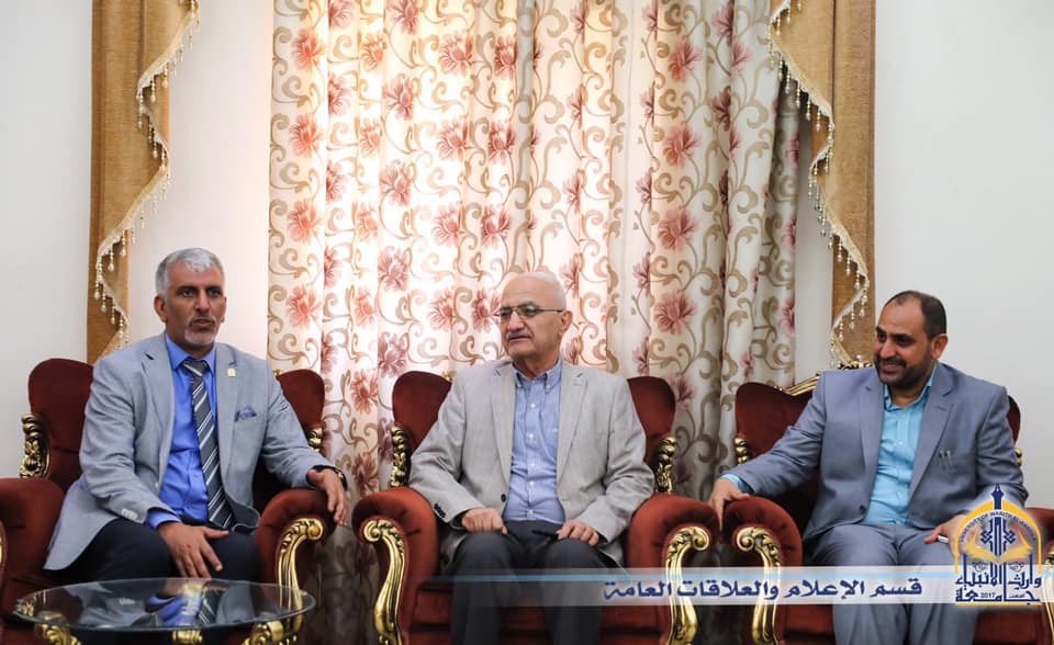 A delegation from Alhamdaniya University, which is located in Nineveh city, visited the University of Warith Alanbiyaa. The delegation was consisted from the scientific assistance Dr. Kazal Yassin, the head of scientific affairs department Dr. Jasim Mohammed Rajab and from El-Shaykh Khair Al-Deen Al-Hadi. The delegation came to discuss the possible agreements and cooperation between the two universities, and was received by the acting President of the University Dr. Abbas al-Daami and some deans of colleges and heads of departments.