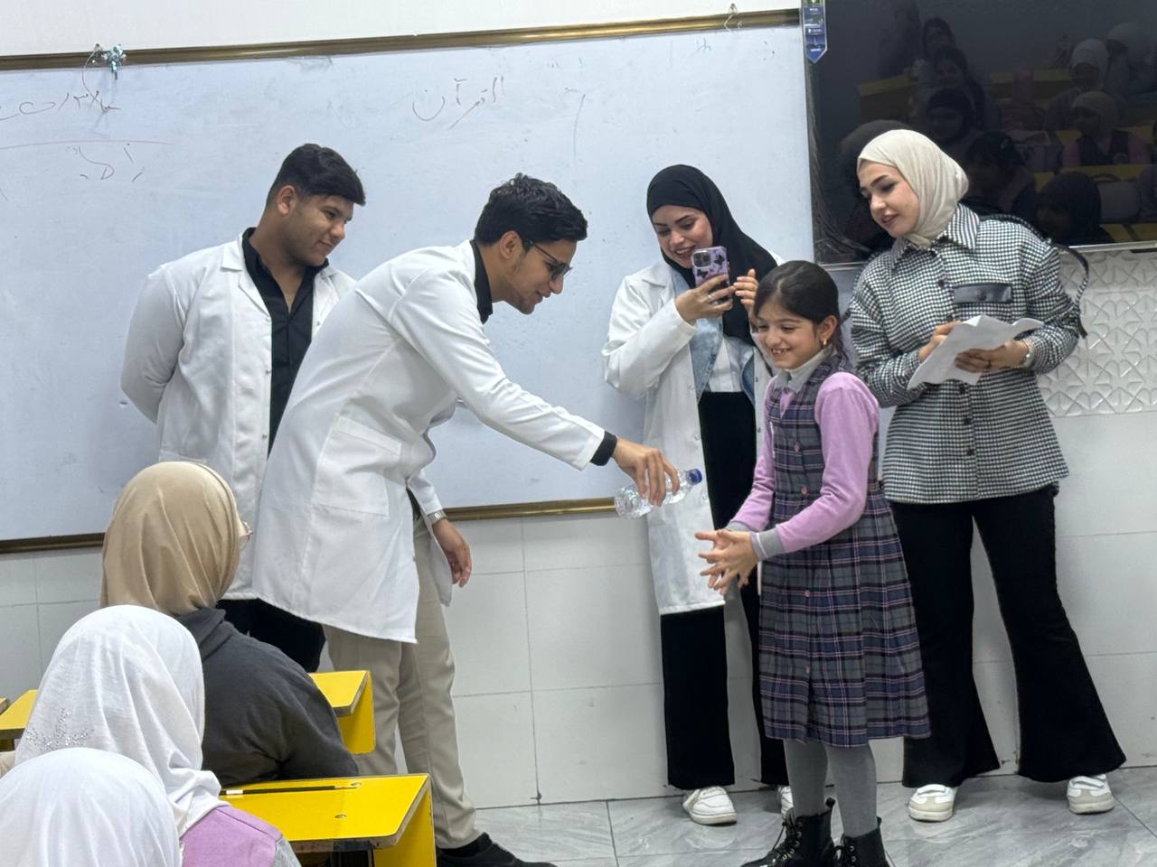 Under the direction of the esteemed Dean of the College of Nursing, Professor Dr. Murtada Ghanem Adai, fourth-year students in the Community Health Nursing Department, under the supervision of faculty members, visited Sama Al-Rayyan Elementary School as part of the practical requirements for the Community Health Nursing course. The students provided health education to the school's students on several topics, most notably proper nutrition and its impact on children's health and academic achievement. They also provided first aid, personal hygiene, the importance of handwashing, and safe play and non-harmful activities. The school environment and services provided to students were also evaluated.
