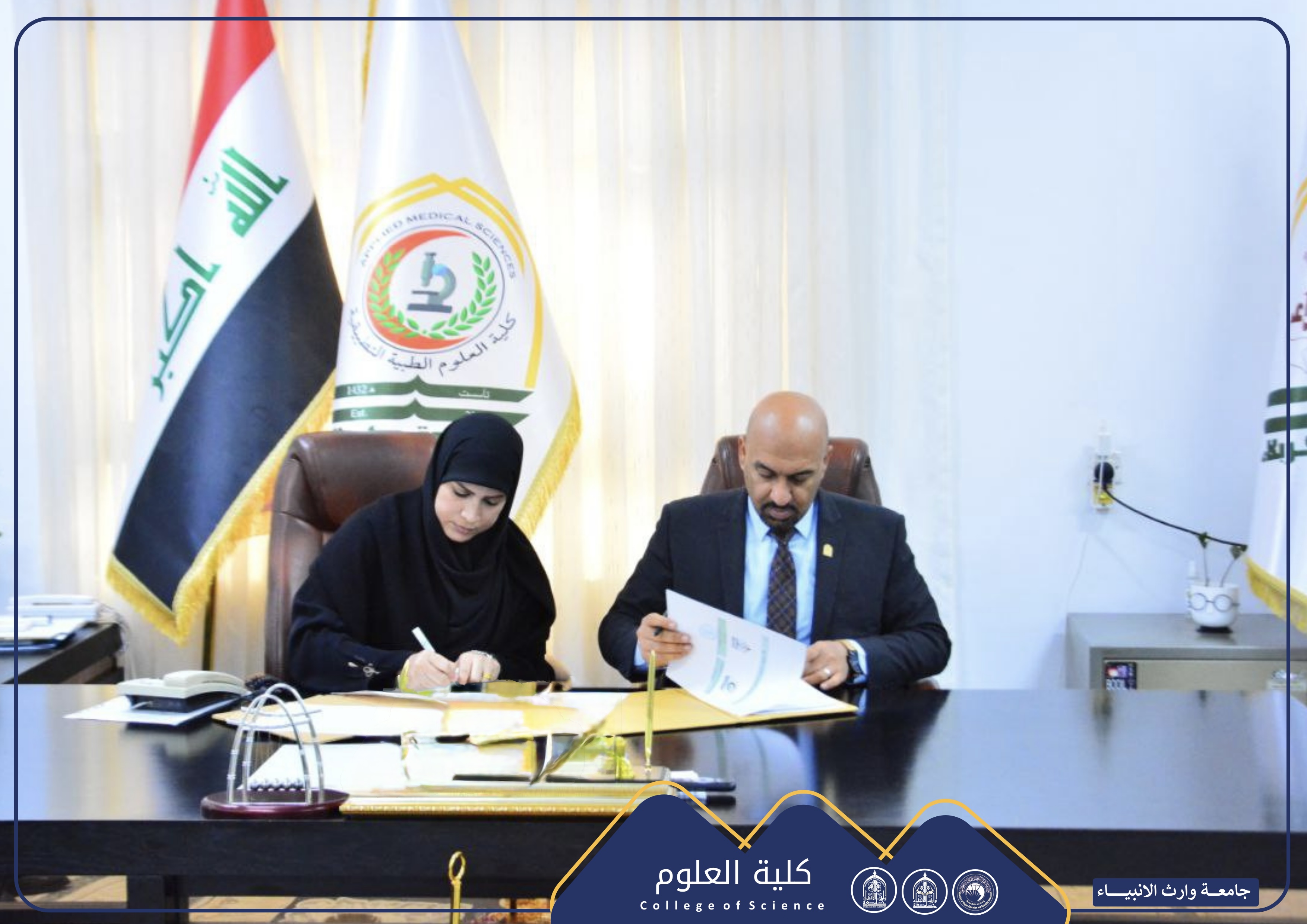 As part of strengthening academic cooperation and exchanging scientific expertise, Assistant Professor Dr. Shaimaa Hussein Nofal, Dean of the College of Science at Warith Al-Anbiyaa University (peace be upon him), signed a scientific twinning agreement with Assistant Professor Dr. Hassan Faisal Al-Yassari, Dean of the College of Applied Medical Sciences at the University of Karbala.