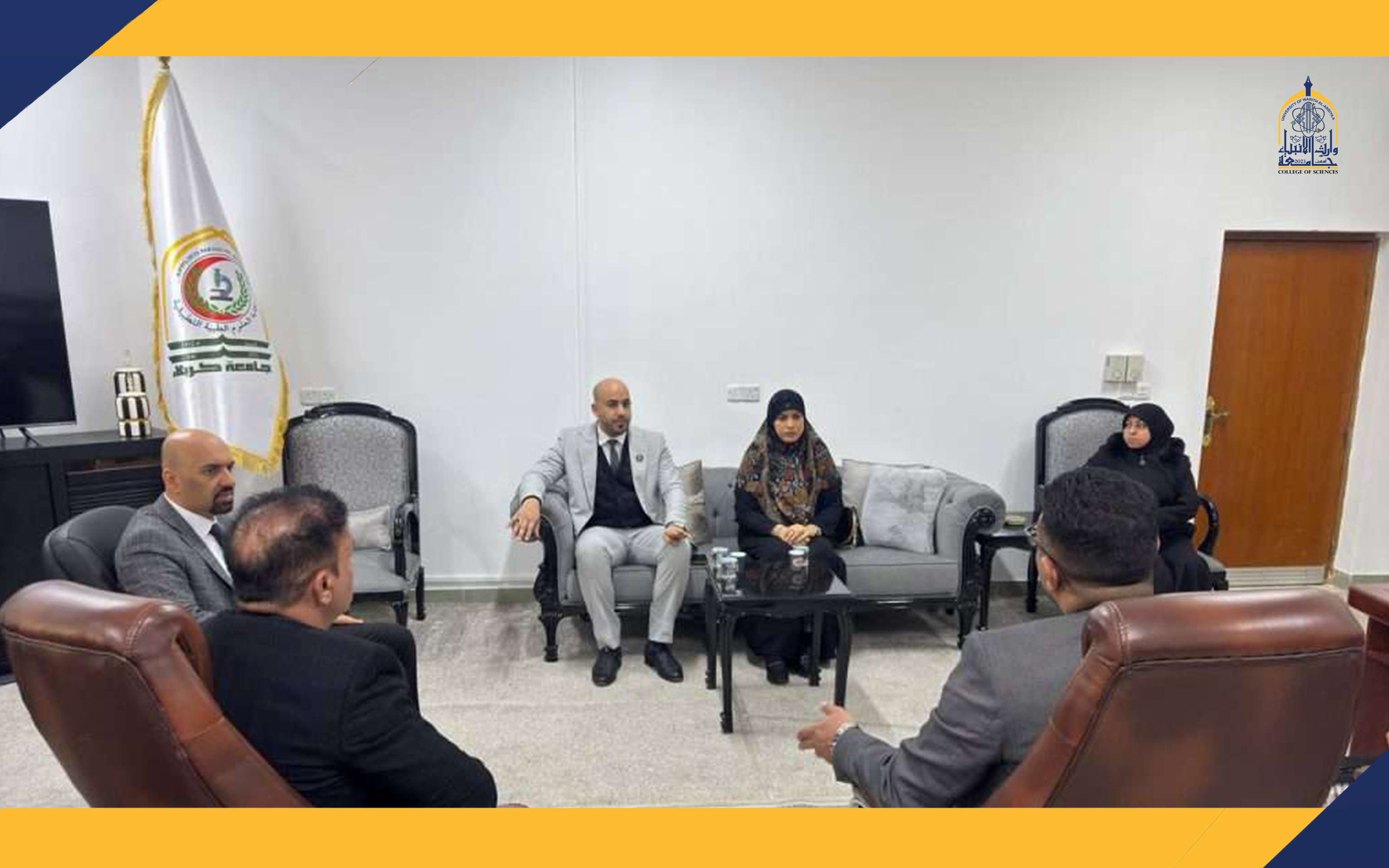 The meeting also explored the establishment of a central materials laboratory at the University of Warith Al-Anbiyaa to support students and research projects. Additionally, an agreement was reached for faculty members from the College of Applied Medical Sciences at Karbala University to contribute to scientific research projects and support the research center being established at the University of Warith Al-Anbiyaa.