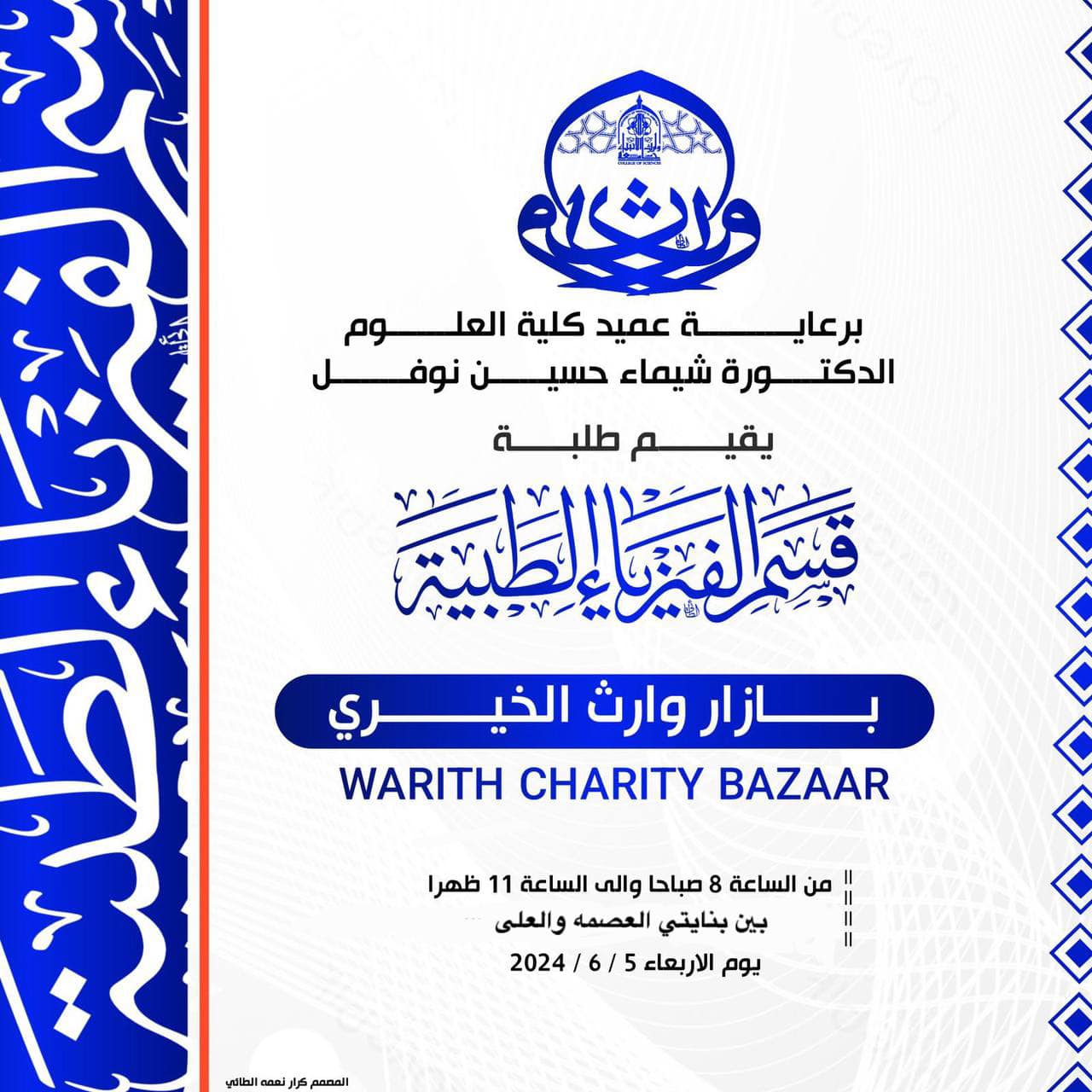 Warith Charity Bazaar under the patronage of the esteemed Dean of the College of Science, Asst. Prof. Dr. Shaimaa Hussein Nofal.