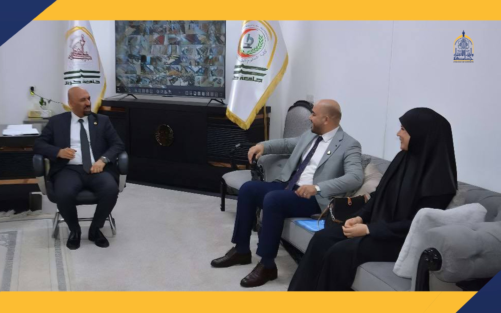 ⭕️The College of Sciences at the University of Warith Al-Anbiyaa visited the College of Applied Medical Sciences at the University of Karbala with an academic delegation led by the Dean of the College, Assistant Professor Dr. Shaimaa Hussein Nofal, accompanied by the Administrative Affairs Assistant Dean, Assistant Professor Dr. Haider Al-Ghanmi, and several faculty members.
