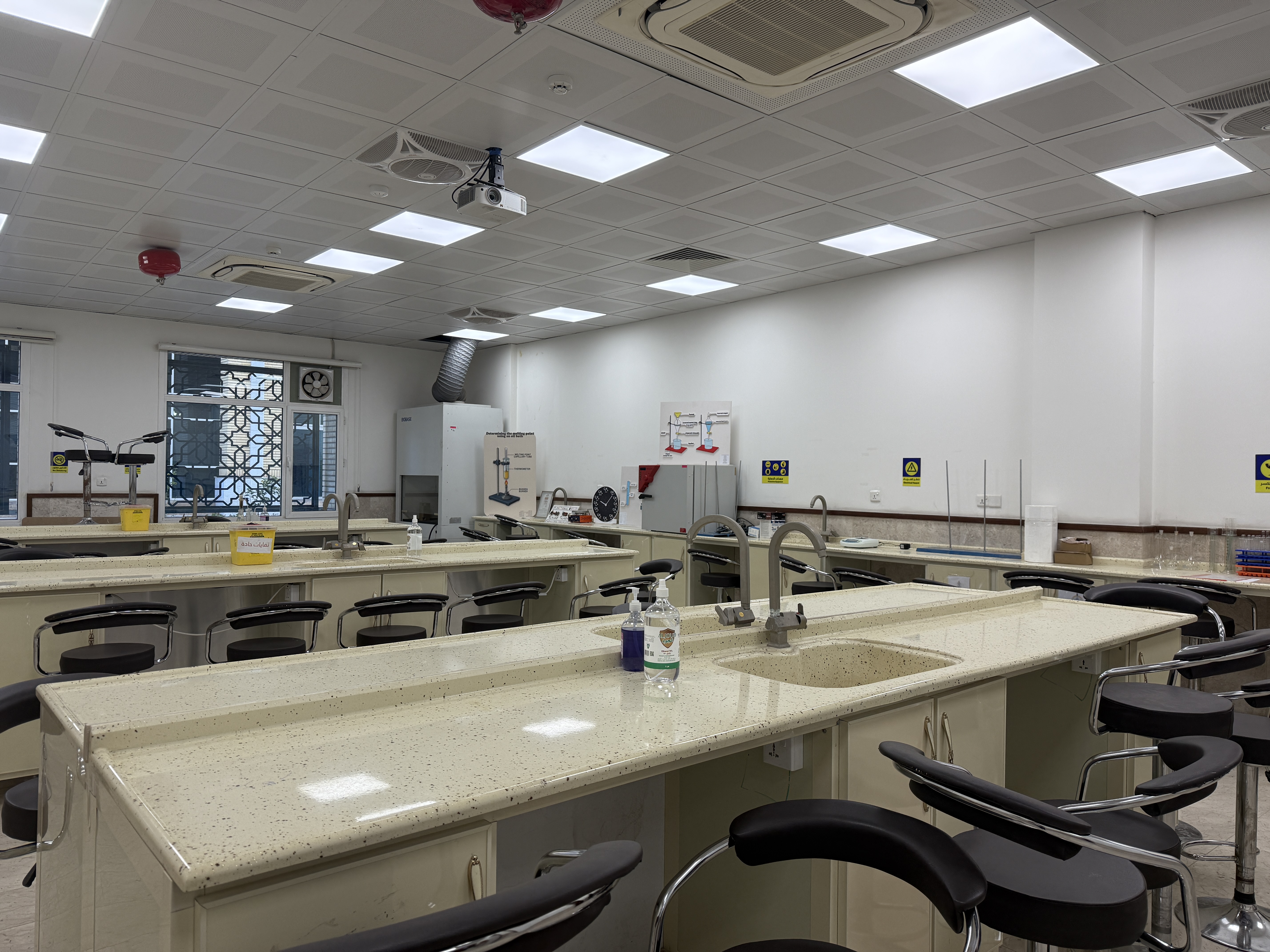 One of the laboratories of the College of Science, Warith Al-Anbiya University, contains 50 Labtop computers and educational tools such as a display screen and a data projector, in which students are trained to use computers and various programs with the aim of developing students’ skills.