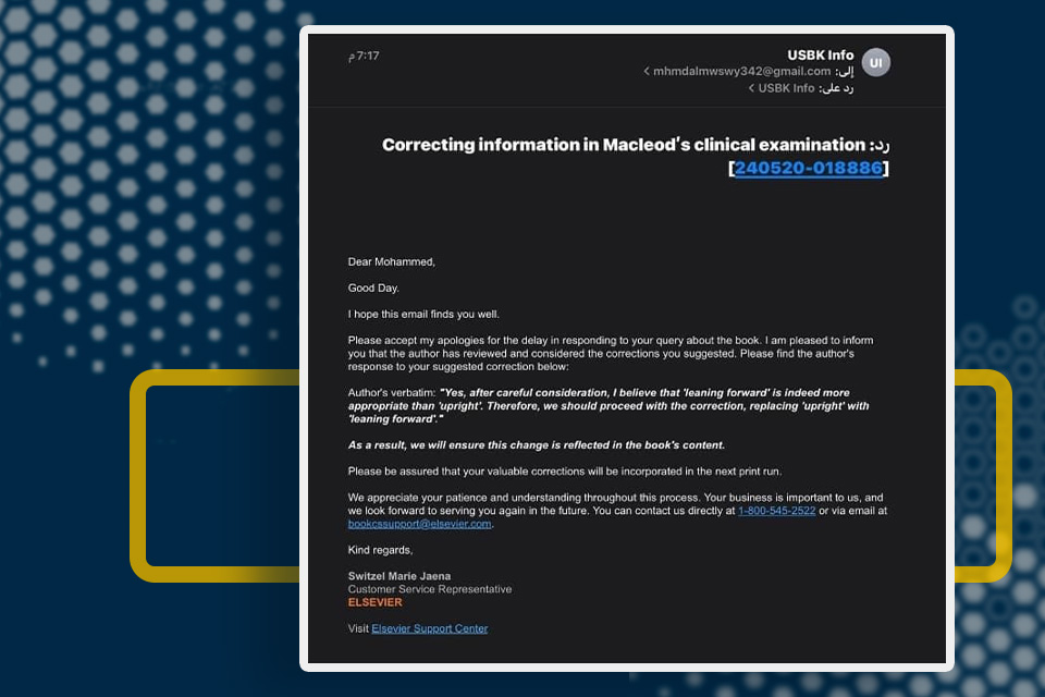 Warith Al-Anbiyaa Student Finds Error in Global Clinical Diagnosis Book