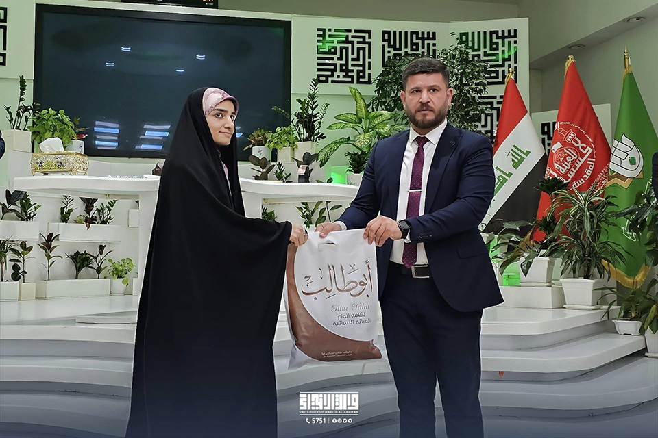 Zahraa Ibrahim Mahdi, a student in the Biomedical Engineering Department at the College of Engineering, accomplished a noteworthy feat by taking first place in the "Read" competition, which was held at the Holy Shrine of Imam Hussein (PBUH) and organised by the Human Resources Development Department.