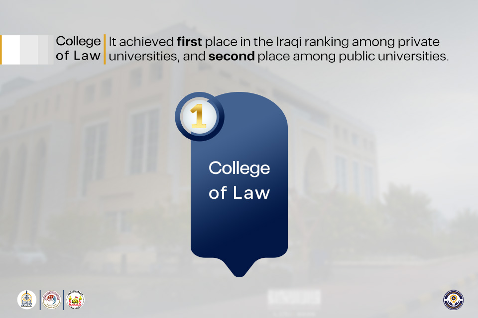 The College of Law at Warith Al-Anbiyaa University (peace be upon him) achieved a distinguished academic accomplishment by ranking first among private universities and second among public universities in the Iraqi Ranking of Academic Departments, reflecting the college’s high academic performance and advanced standing within Iraq’s higher education sector.