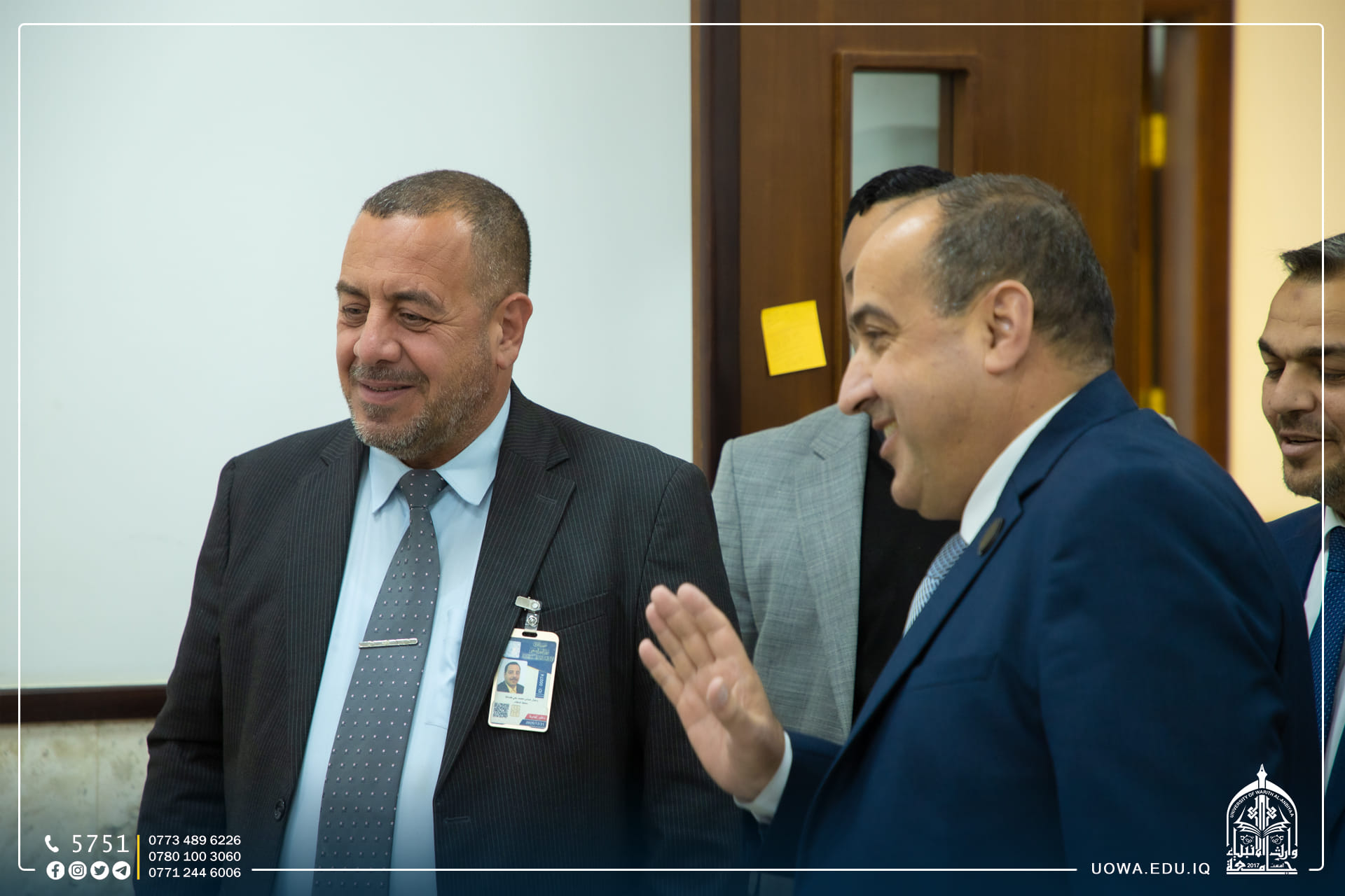 The university delegation included the Assistant Scientific, Dr. Waqad Al-Mousawi, the Dean of the College of Engineering, Dr. Hussein Al-Awadi, and his assistant Dr. Ali Basim. They were greeted by the President of Technological University, Dr. Ahmed Al-Ghban, and the Assistant Scientific Dr. Khawla Salah Khushan, along with heads of scientific and administrative departments at the university.