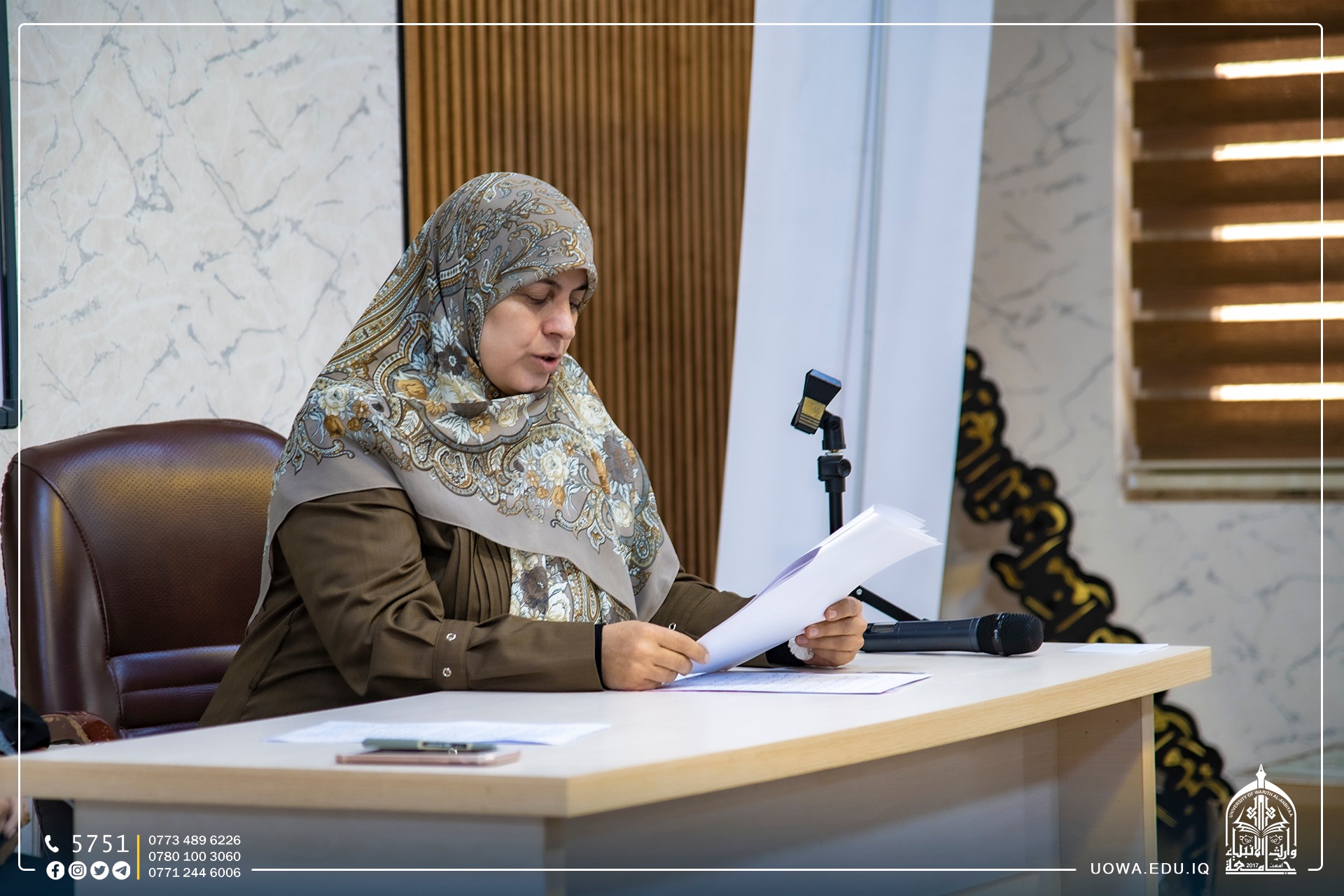 The Department of Internal Affairs at the University of Warith Al-Anbiyaa (Peace Be Upon Him) organized a scientific seminar titled "The Risks of Gender Socialization." The seminar was presented by Dr. Wafaa Abbas Fayadh and Assoc. Prof. Dr. Faeza Thaaban Mansi from the University of Karbala.