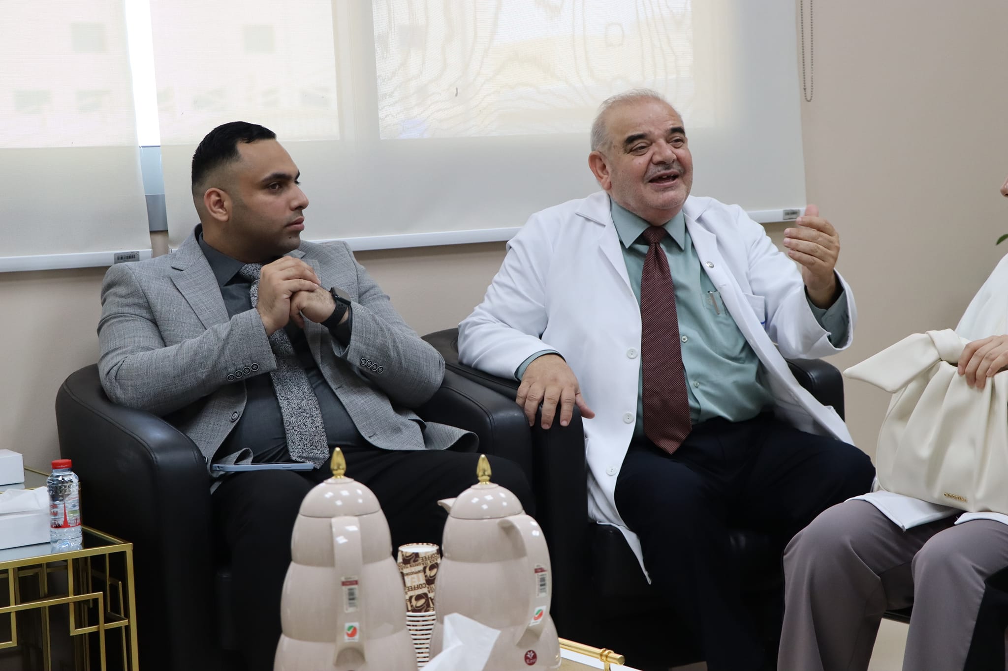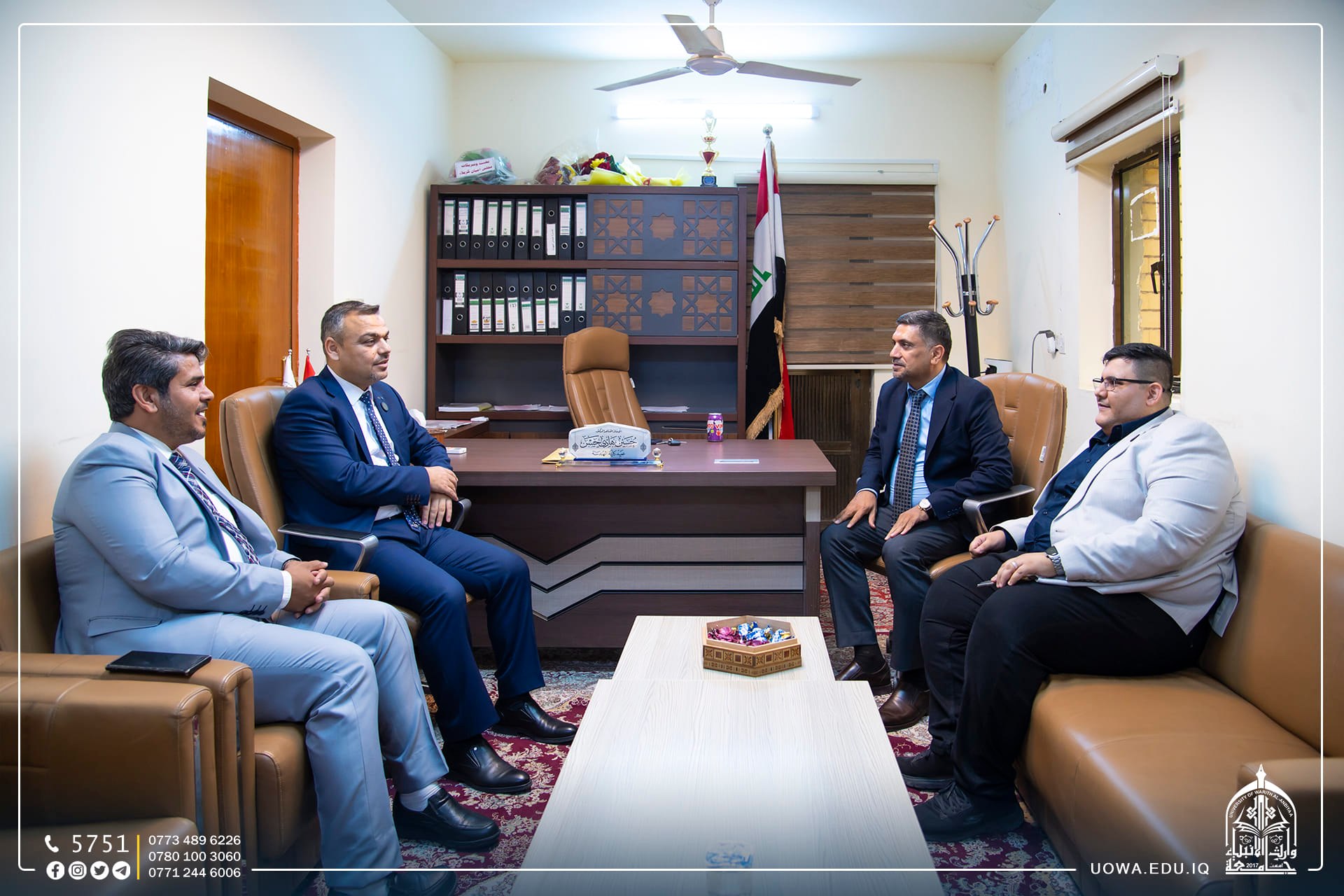 The University President, Professor Dr. Ibrahim Al-Hayawi, received a delegation from the College of Medicine at the University of Baghdad, led by the Dean of the College, Assistant Professor Dr. Ameen Abdul Hassan Al-Alwani. This visit was conducted to discuss the ways and possibilities of scientific cooperation between the College of Medicine at the University of Warith Al-Anbiyaa (peace be upon him) and the College of Medicine at the University of Baghdad in line with our university's vision and future aspirations to strengthen the educational process and benefit from the academic expertise that the College of Medicine at the University of Baghdad possesses to train and prepare our students. It is worth noting that the University of Warith Al-Anbiyaa (peace be upon him) is taking steps to keep up with the robust educational landscape by entering international rankings through partnerships and twinning with prestigious local, Arab, and international universities.