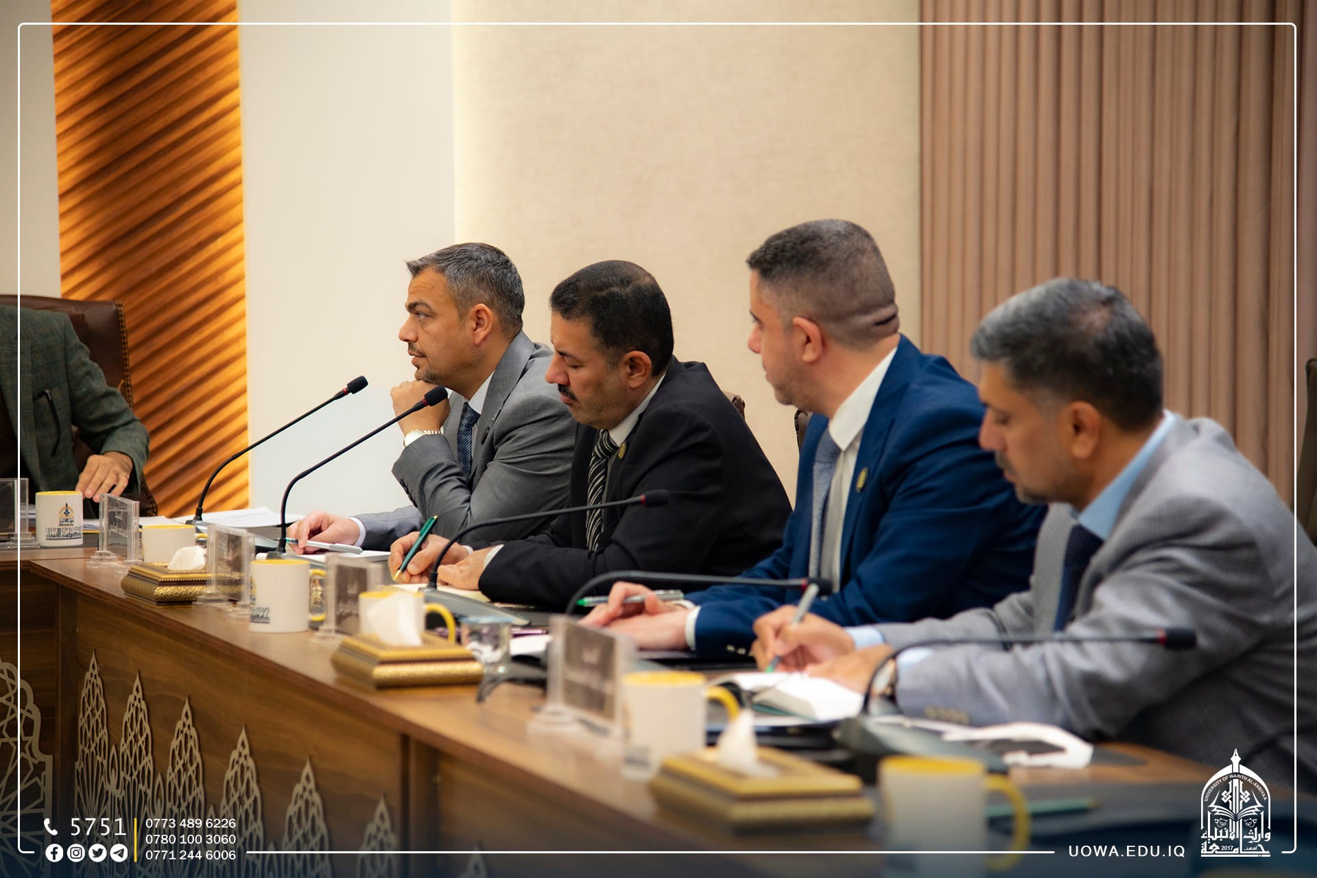 The Council of the University of Warith Al-Anbiyaa (peace be upon him) holds its regular session under the chairmanship of Professor Dr. Ibrahim Al-Hayawi and the membership of the university's vice-presidents for administrative and scientific affairs and the deans of the colleges to discuss a series of decisions that serve the university and its dear students.