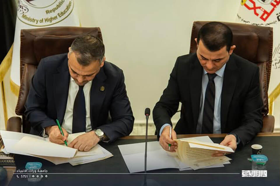 Professor Dr. Ibrahim Saeed Al-Hayawi, President of the University of Warith Al-Anbiyaa (PBUH), signed a scientific cooperation agreement with the Arab Union for Digital Empowerment in the State of Libya, represented by its President, Professor Dr. Abbas Al-Jubouri, in the presence of the university’s vice presidents.
