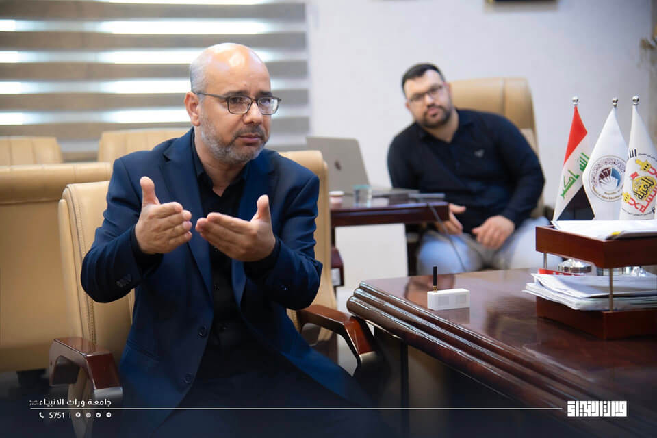 The President of the University of Warith Al-Anbiyaa (PBUH), Prof. Dr. Ibrahim Saeed Al-Hayawi, welcomed the Director of Al-Imam Al-Hadi Centre for Neuromuscular Disorders — affiliated with the Holy Shrine of Imam Hussein (PBUH) — to discuss avenues of joint cooperation in scientific, research, and medical fields.